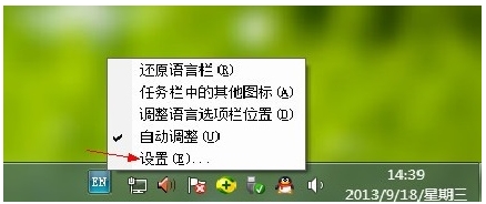 1. 把鼠标移到EN处,右键打开菜单,点击:设置