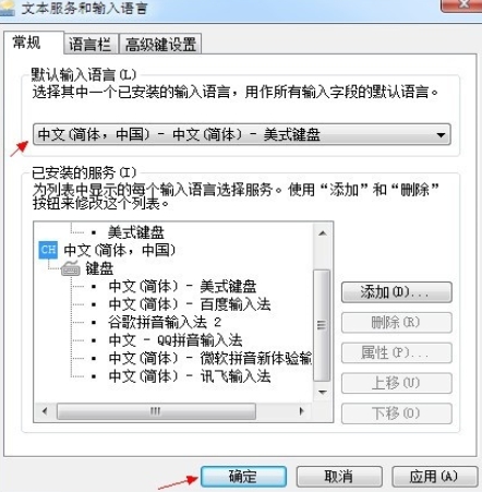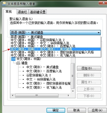 2. 打开设置后,选择:中文(简体,中国) - 中文(简体) - 美式键盘