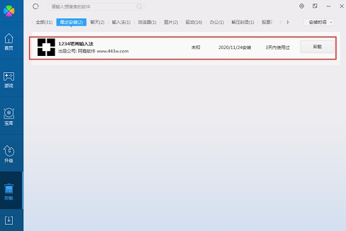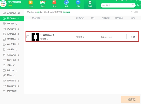 方法二:安装并打开360软件管家,在卸载选项的列表中找到1234笔画输入法,点击卸载即可