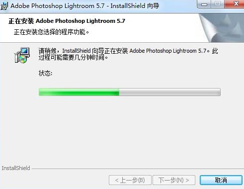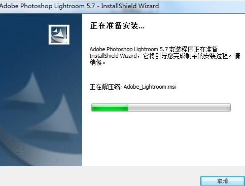 1.获取安装包后解压执行"Lightroom_5_LS11_win_5_7.exe",建议修改默认安装路径至非系统盘符,选择完成后进入准备阶段;