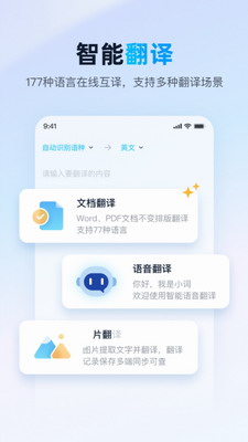 2. 全场景翻译服务:支持文本、语音、图片多模态翻译,即时处理外文邮件、文档、社交信息等内容,独创的情景会话模块可模拟真实对话语境。