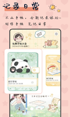 免费手账工具生活规划神器是一款集创意记录与高效管理于一体的移动端应用,采用简约清新的视觉设计风格,搭配直观的功能布局,为用户带来沉浸式的手账创作体验。应用内整合了超过500款风格各异的主题模板,涵盖日式盐系、韩式ins风、国潮手绘等多种类型,支持用户根据场景需求自由切换模板组件,打造个性化数字手账本。