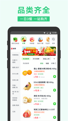 2、全品类供应体系:平台建立从田间到餐桌的完整供应链,每日动态更新600余种商品,除常规蔬果肉禽外,还特别提供当季特色农产品和进口食材选择。