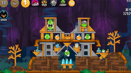 3、角色特性掌握:蓝色分身鸟适合密集目标,黄色加速鸟专克金属结构,黑色炸弹鸟应对复杂地形