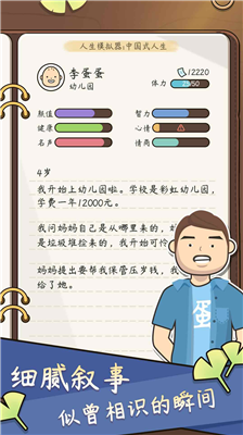 中式人生模拟器全新人生轨迹开启是一款深度还原中国社会生态的沉浸式模拟游戏,通过细腻的场景构建与事件设计,完整呈现从襁褓婴儿到耄耋老者的人生全景。游戏以本土化叙事为核心,将升学压力、职场晋升、婚恋选择等极具中国特色的社会命题融入其中,玩家在虚拟世界中可体验不同阶层、不同地域的真实人生轨迹。