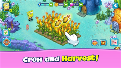 4、模拟经营玩法融合冒险元素,玩家可通过种植海底作物、经营蟹堡王餐厅获取重建资源,打造个性化海底生态圈。