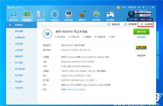 2、定位至界面右上角的「生成报告」功能按钮,此功能可将检测结果进行系统化整理;