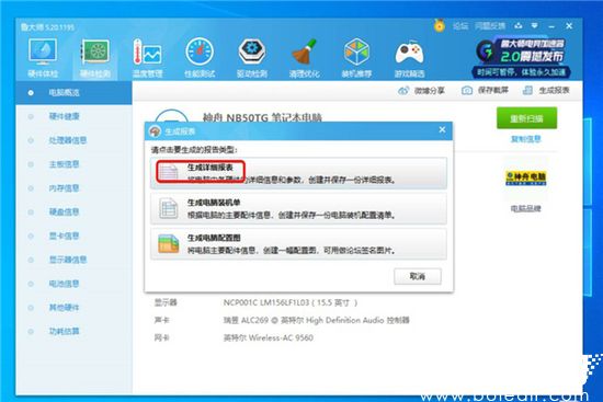 3、在报告类型选择界面点选「生成完整配置报告」,此选项将包含处理器、主板、内存、显卡等全部硬件参数;