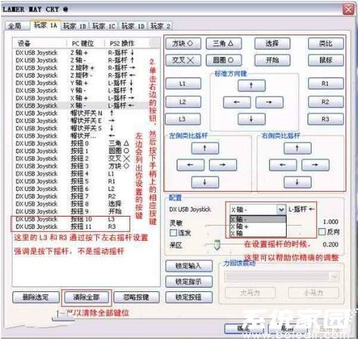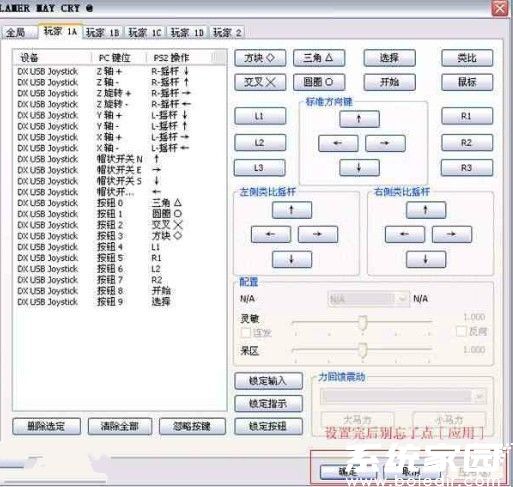 切换至「玩家1A」配置页,按照PS2标准键位布局进行映射。建议先通过手柄MOD键切换至PS2模式: