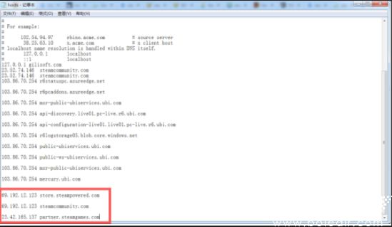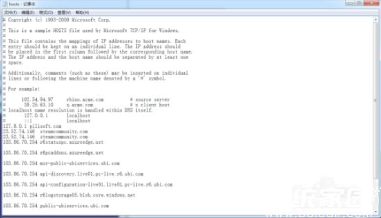 4、域名解析优化配置:在hosts文件末尾添加下列服务器地址映射关系,注意保持IP地址与域名的对应准确性: