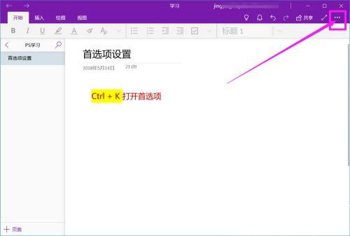 1、启动桌面版OneNote应用程序,在界面右上方定位菜单功能区,点击展开功能选项面板。