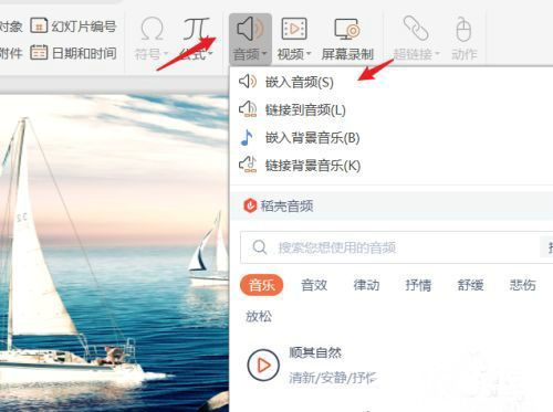 2、导航至顶部菜单栏的「插入」选项卡,在媒体工具组中找到音频插入功能。请注意区分本地音频嵌入与在线音频源的使用场景差异,建议优先选择MP3/WAV等兼容格式。