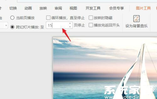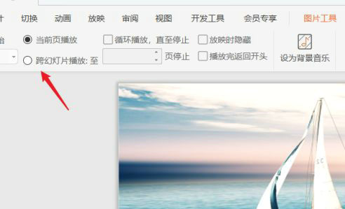 4、在播放设置功能区勾选「跨幻灯片播放」复选框,此时需要特别注意「停止播放」选项的数值设定。该数值代表音频持续播放的幻灯片页数,建议通过「幻灯片放映」-「排练计时」确认实际页码。