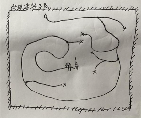首层空间呈现环形回廊结构,东南侧通道存在三处封闭区域(图中标记X处)。建议沿西北方石柱阵列行进,绕过中央水域后可见向下通道。此处需注意躲避巡逻的洞穴守卫,若被察觉将触发强制战斗。