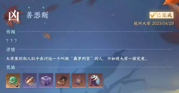 ①触发条件:杭州大牢(仅限被拘捕状态进入)
