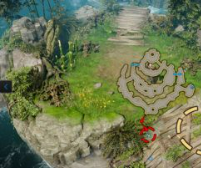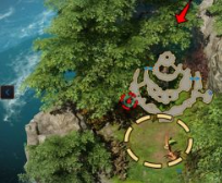 中部红圈区域存在视觉误导设计,实际任务点位于地图标注点东南方向15度夹角处。此处需注意昼夜交替机制——仅在游戏时间清晨5-7点会出现可交互的发光菌群。