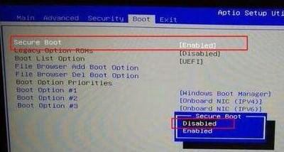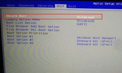 3.定位Secure Boot选项将其状态由Enabled调整为Disabled