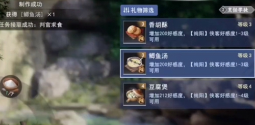 获取鲫鱼汤制作任务后,需注意食材采集的优先级。建议前往云升阁东南侧的镜湖进行垂钓,使用中级钓竿可提升鲫鱼获取概率。若烹饪技能未达三级,可寻找云升阁主厨进行协作,但需准备5枚铜钱作为酬劳。