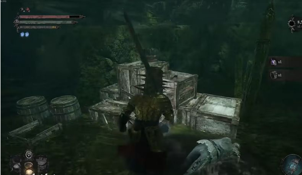 5.最终搜索环节需注意环境细节。目标木箱堆呈现特殊堆叠方式,第二层左侧带有铁质包角的容器即为目标物存放点。使用火属性攻击可快速清除遮挡物,过程中需注意躲避爆炸产生的溅射伤害。