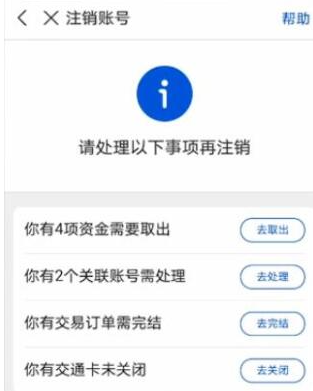 在最终确认界面,需逐项处理「待办事项清单」。包括但不限于:余额提现处理、自动扣款协议解除、关联服务终止等。完成所有前置条件后,点击确认按钮即进入注销倒计时。